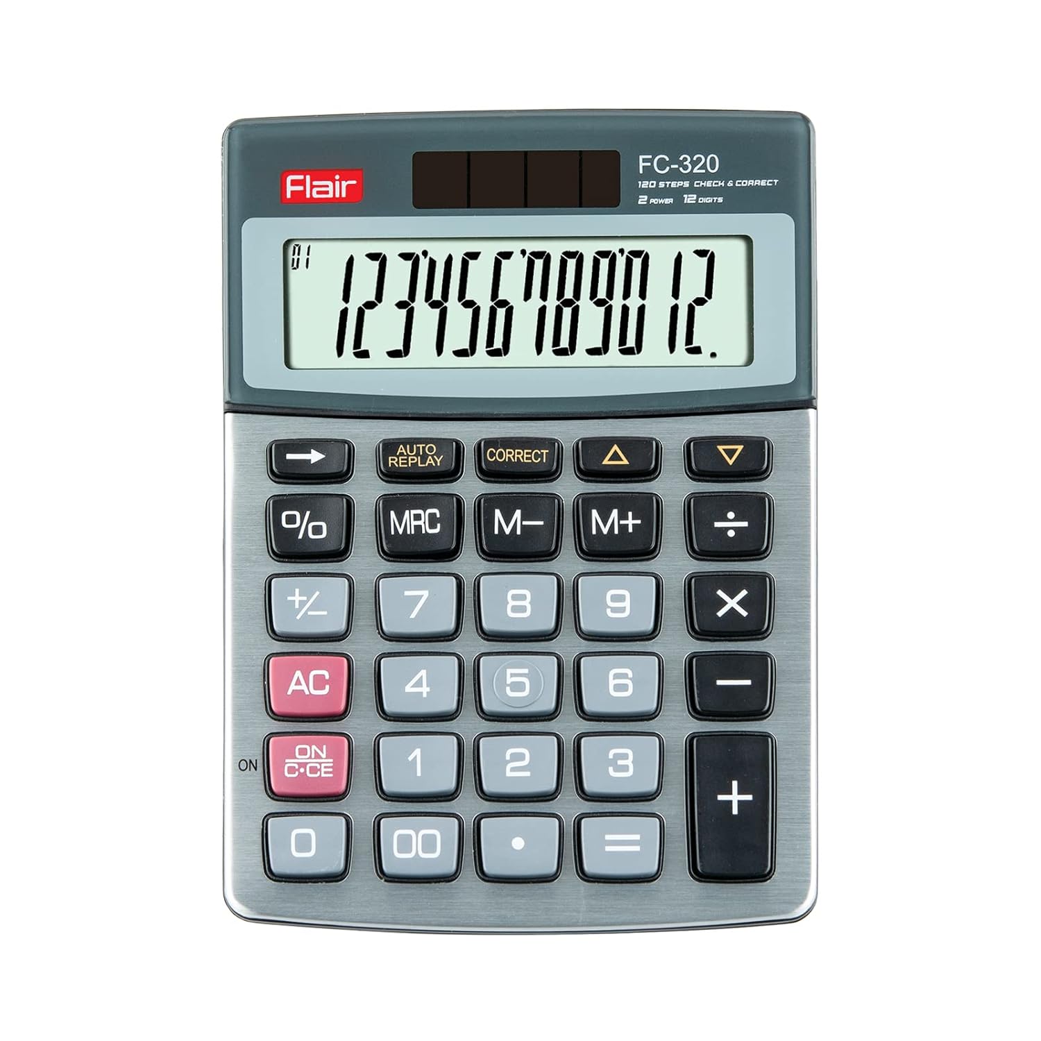 • Key Features: 12 Digit Calculator, 120 Steps Check & Correct, Dual Power, Auto Replay.