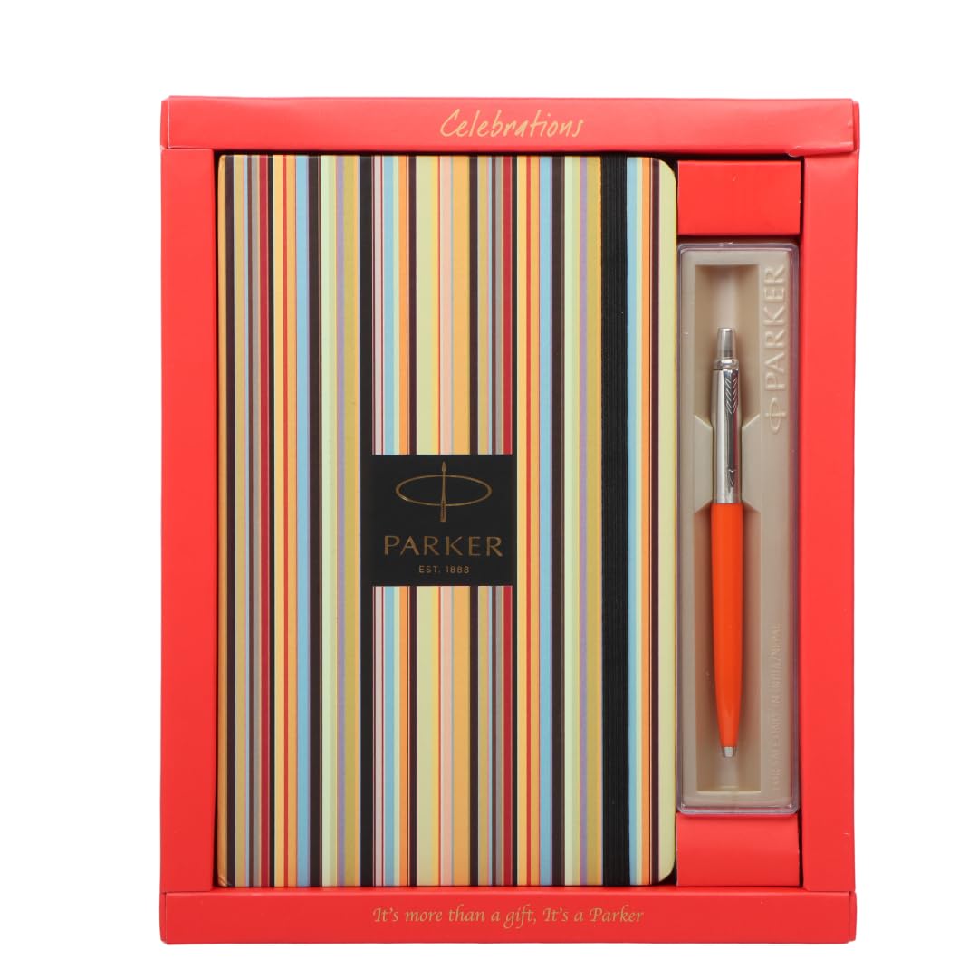 Parker Functional Jotter Standard Chrome Trim Ball Pen, Orange Body & Pin Stripe Diary Gift Set, Blue Ink, Pack Of 1