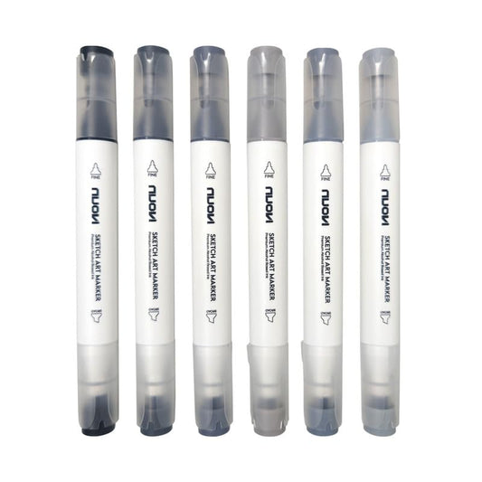 Nuovi dual-tip alcohol based sketch art markers (serene hue, 6 shades)