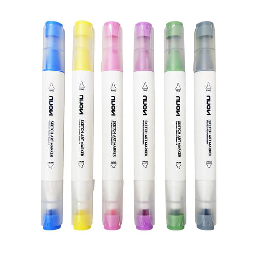 Nuovi dual-tip alcohol based sketch art markers (soft hue, 6 shades)